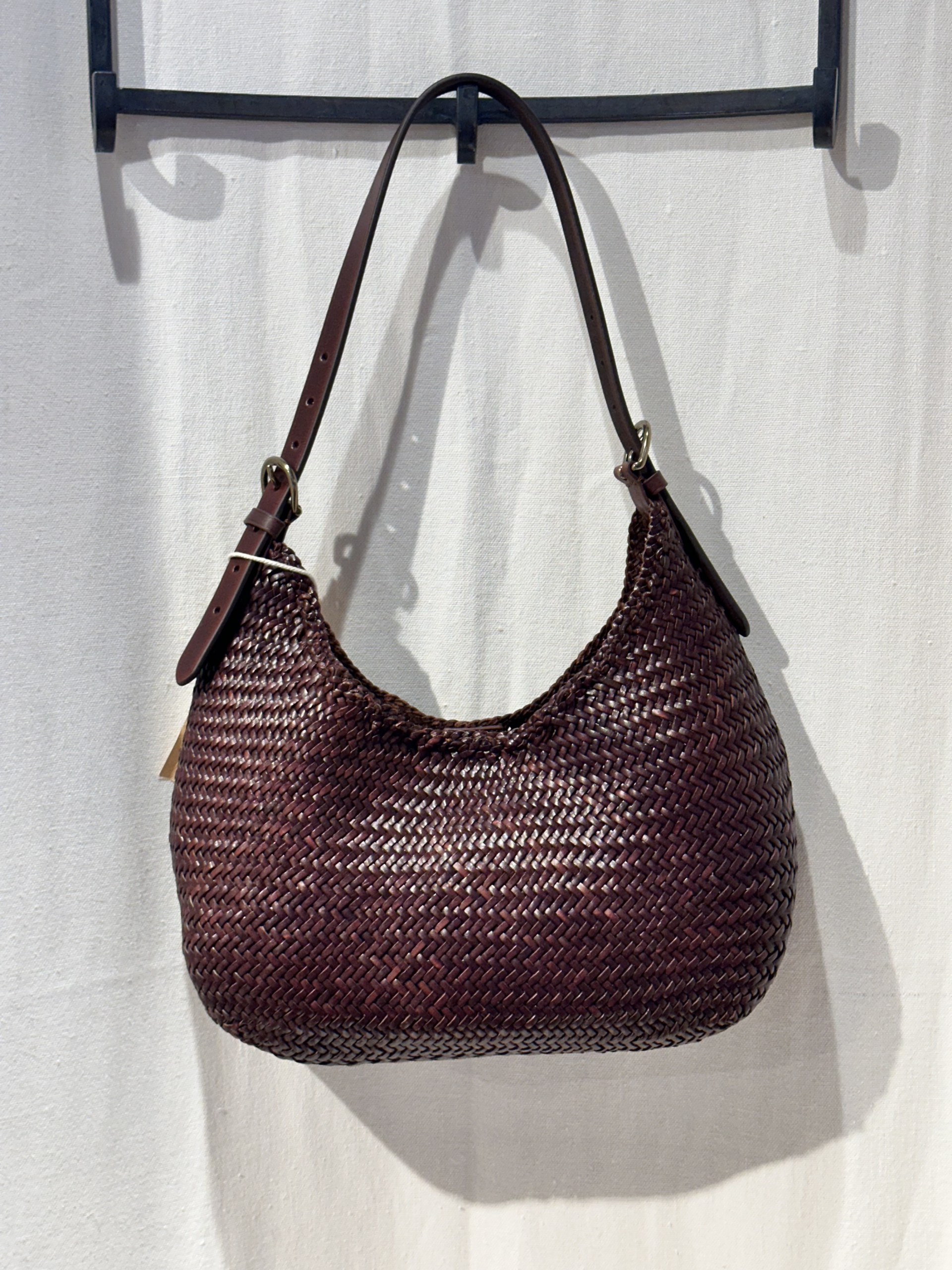 Borsa intrecciata a mano con tracolla regolabile, chiusura con calamita